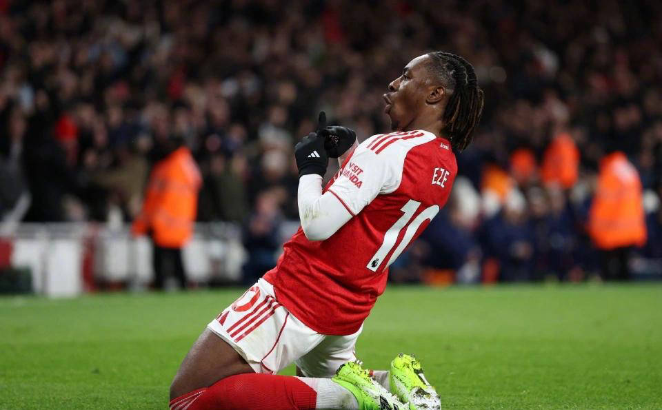 此役阿森纳多名主力缺阵,埃泽与萨卡、特罗萨德及客串中锋的梅里诺组成锋线。第36分钟,特罗萨德率先破门为阿森纳取得领先。仅5分钟后,埃泽精准抽射攻入个人首球。下半场,埃泽再次展现冷静,一记快攻扩大优势,随后在热刺扳回一球后,继续破门完成帽子戏法,帮助球队最终以4-1锁定胜局。全场数据方面,埃泽6次射门命中3球,射正4次,突破3次均为全队最高。此外他贡献1次关键传球,2次抢断和拦截,9次地面对抗赢得7次,表现全面且高效。赛后他更获得媒体10分满分评价,实至名归。
